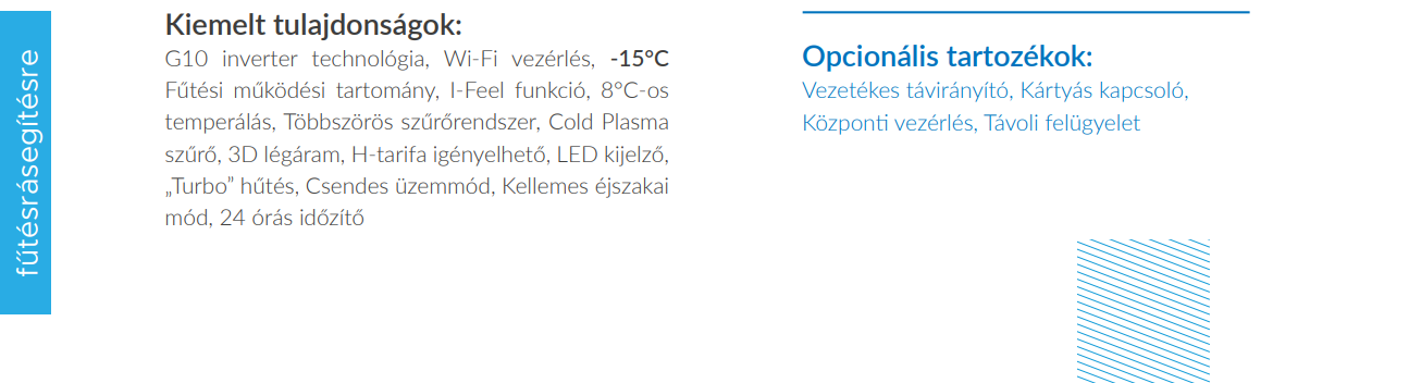 Oldalfali klíma felszerelésének és beüzemelésének díja 4 kW teljesítményig bruttó 85.900 Ft 3 méteres csőszakaszig kábelcsatornázás nélkül (a 3 méteres alapszerelés kábelcsatornázásának felára összesen bruttó 13.000 Ft), mely az alábbiakat tartalmazza: