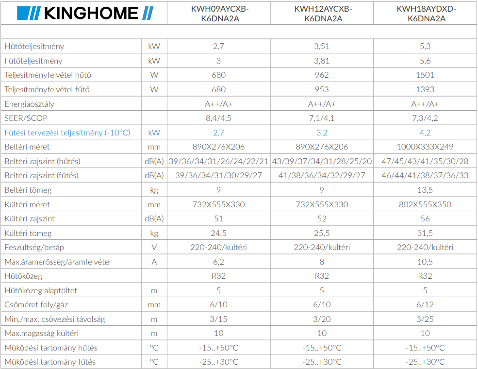 A Kinghome KWH18AYDXD-K6DNA2A Maximus Inverteres Split klíma fontos tulajdonságai: